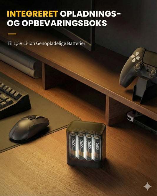 Batterioplader-sæt med 8 genopladelige AA-batterier – hurtigoplader 2,5 timer (til AA- og AAA-batterier)