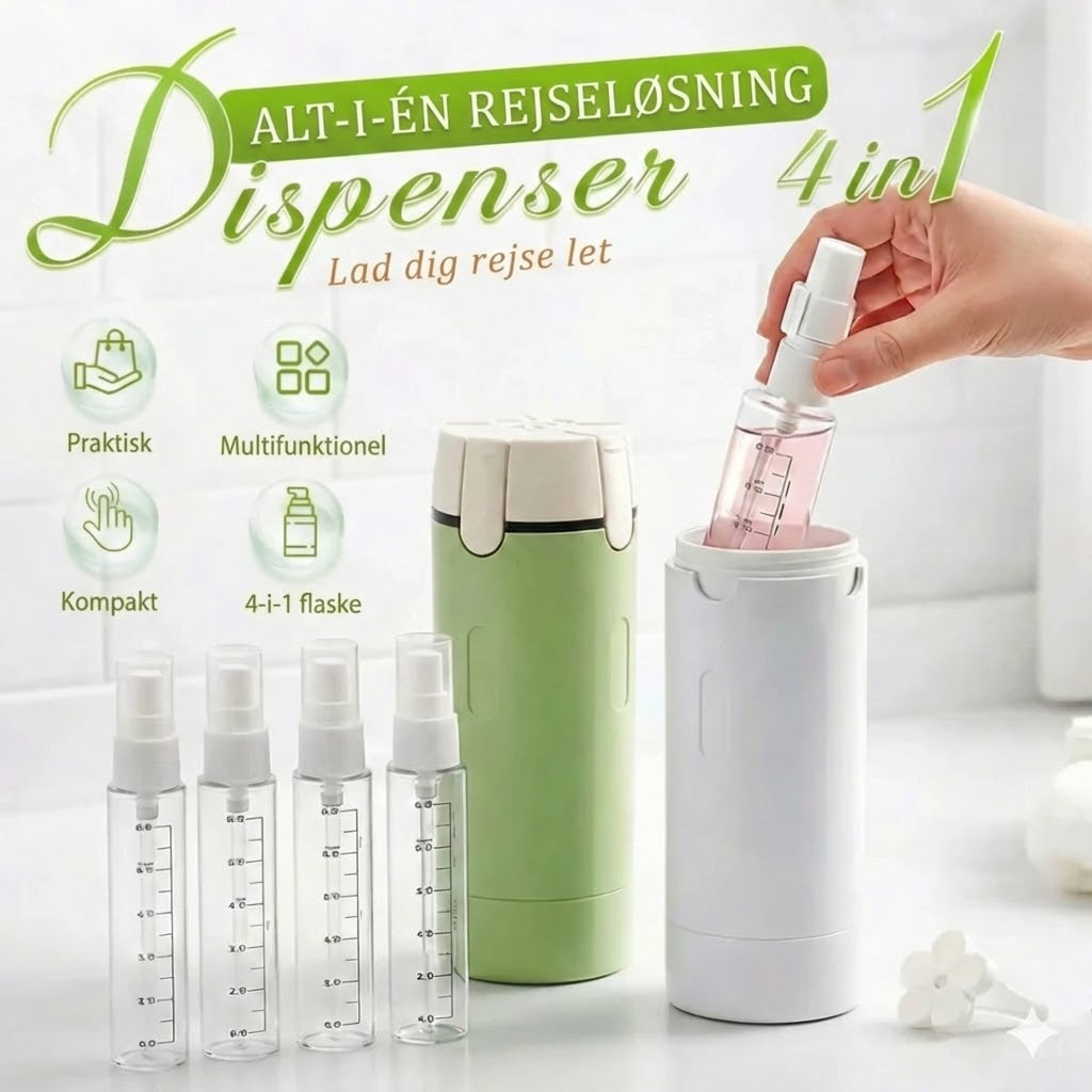 Pakkens indhold: 1 × 4-i-1 genopfyldelig rejseflaskesæt