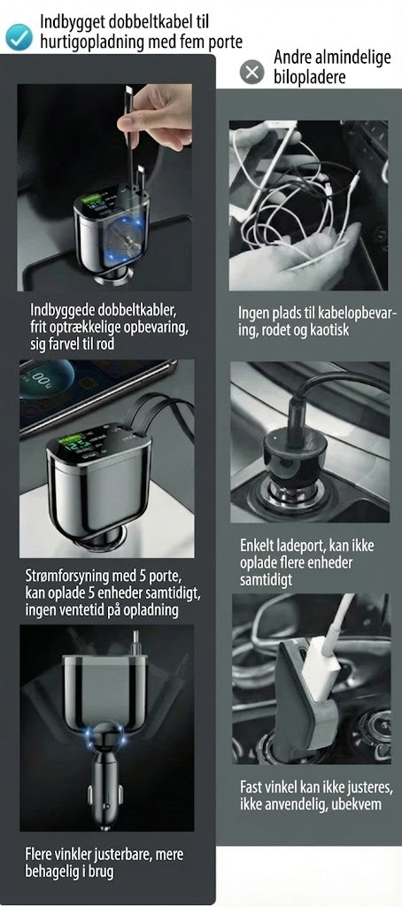 5-i-1 billader til for- og bagsæde – med forlængerkabel