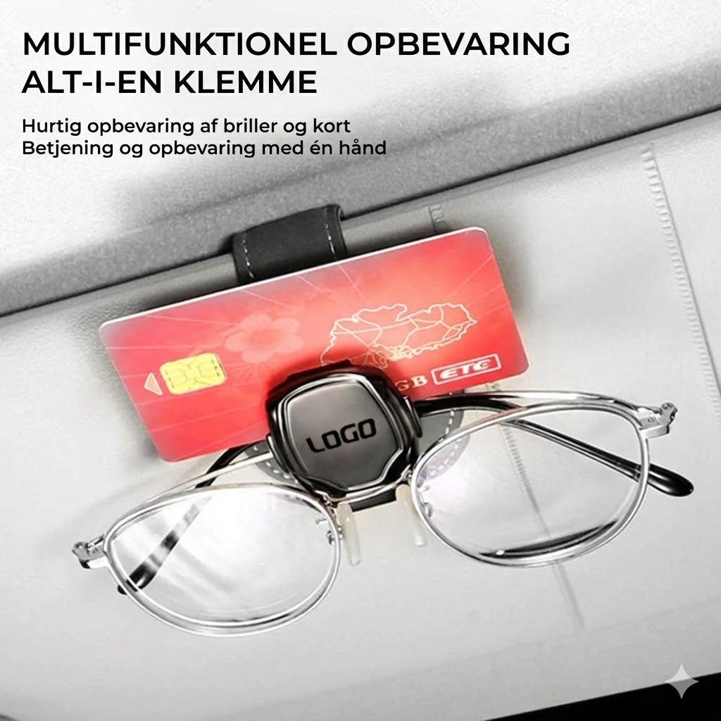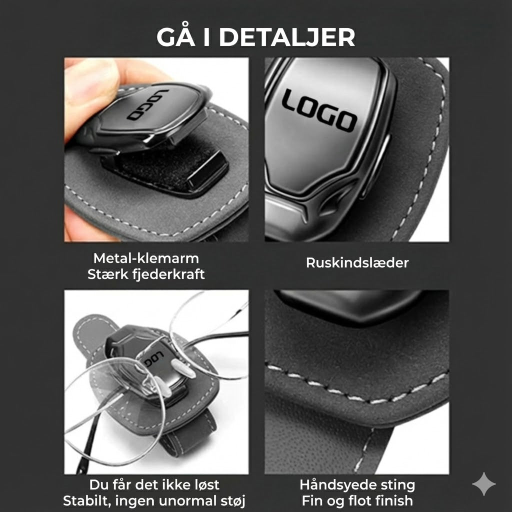 Med denne bilbrilleholder med logo har du altid dine briller sikkert placeret og nemt tilgængelige. Du slipper for at lede i lommer eller mellem sæderne, så du kan holde fuldt fokus på vejen og køre mere sikkert. Samtidig bidrager det smarte design til et mere ryddeligt og roligt bilinteriør.