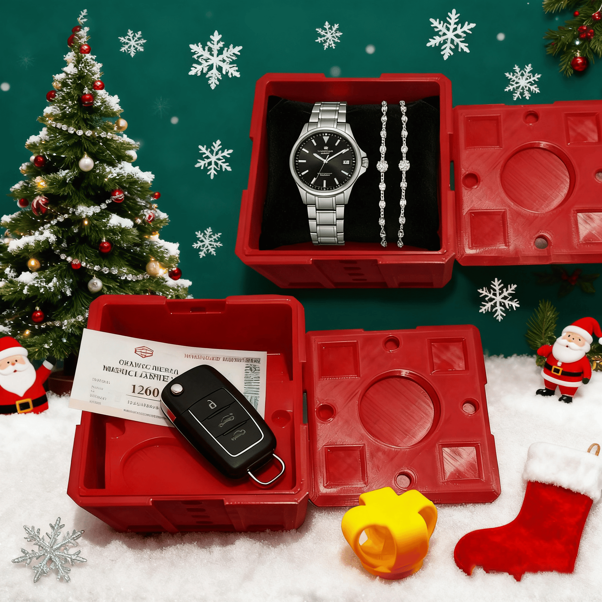 Selve åbningsprocessen er en del af underholdningen. Æsken er udstyret med en drejeskrue-mekanisme, men modtageren skal først opdage den skjulte nøgle under gavebåndet. Derefter skal flere små skruer skrues løs. Denne gennemtænkte konstruktion opbygger spændingen og gør unboxing-oplevelsen særligt interaktiv og mindeværdig.