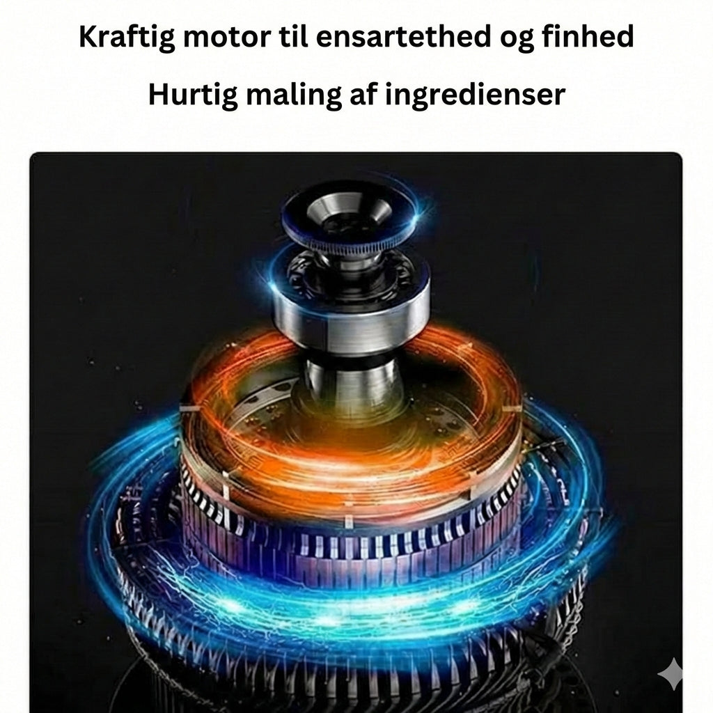 ⚠️Vigtig bemærkning: Denne kværn er kun egnet til tørre fødevarer såsom kaffebønner, peberkorn, ris og nødder. Ikke egnet til fugtige fødevarer som løg eller frugt.