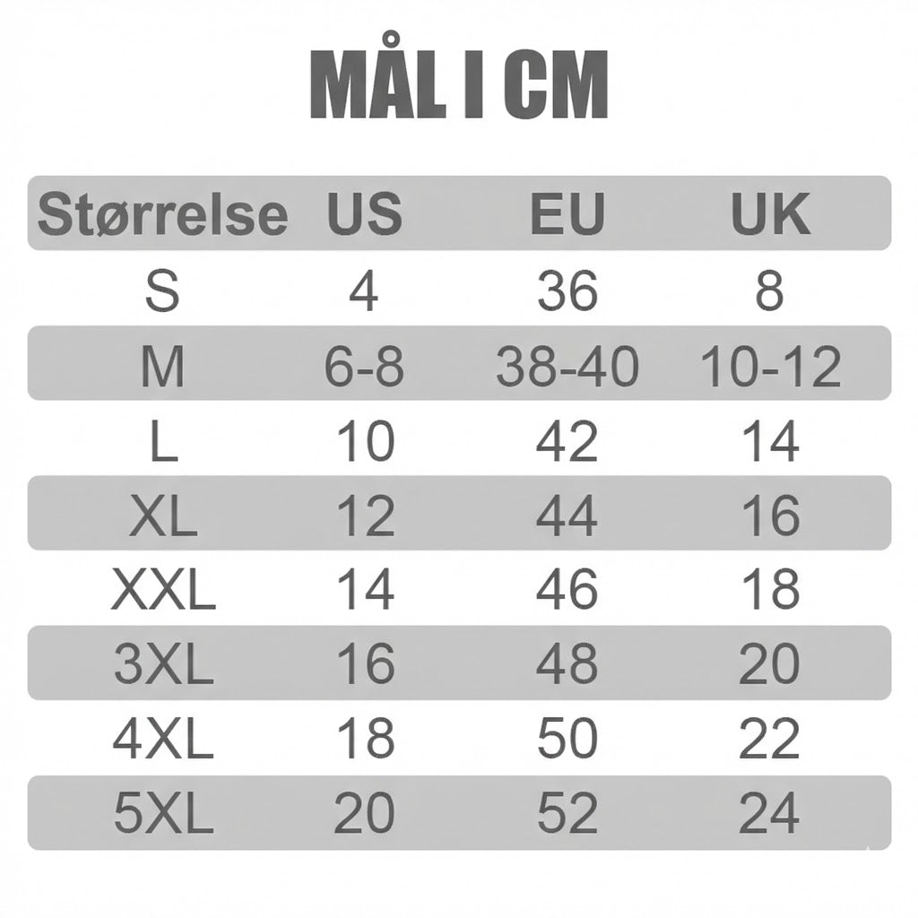 Størrelser: S, M, L, XL, 2XL, 3XL,4XL