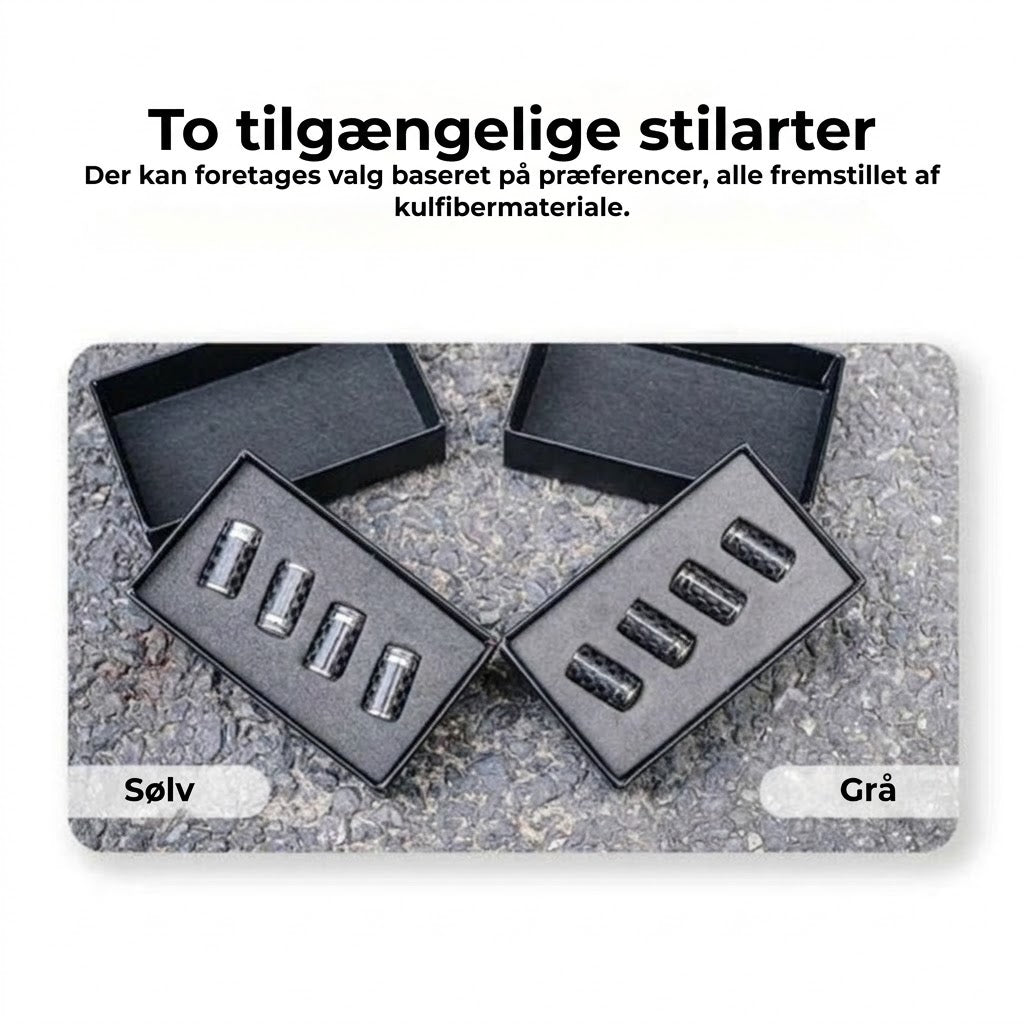 Et stilfuldt og diskret design til din bil. Den karakteristiske kulfiberstruktur og den kompakte cylindriske form giver hjulene et elegant udseende uden at virke for iøjnefaldende. Ventilhætterne passer til mange forskellige bilfarver og stilarter og fungerer som en dekorativ detalje.