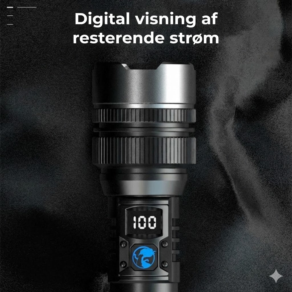 Oplys mørket med det samme. Den ekstra brede lysstråle gør det nemt at oplyse hele rum eller udendørs områder. Lysudbyttet er markant – op til 20 gange kraftigere end traditionelle lommelygter og dobbelt så stærk som standardmodeller, hvilket sikrer fremragende synlighed under alle forhold.